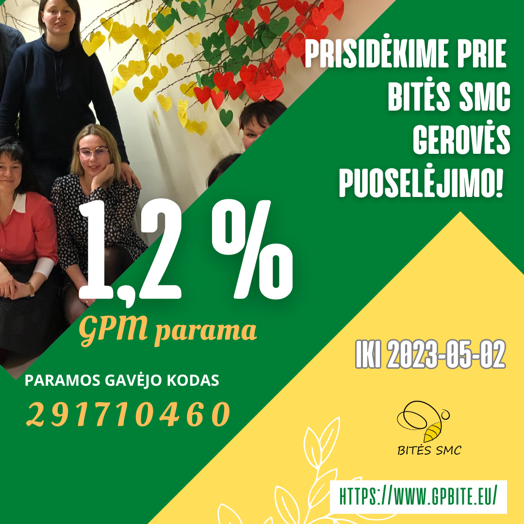 Žemiau pateikiame išsamią instrukciją, kaip vos per kelias minutes suformuoti prašymą dėl 1,2 proc. skyrimo Bitės SMC.